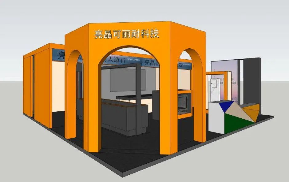 亮晶可丽耐蓄势待发,在3N222号展馆,打造了一个奇特、简约、现代风格的参展体验展馆,本次展馆主题设计是“科研创新,技术引领”,以姜黄色调为主,布置了温馨而舒适的产品体验区和接待区,携手行业首创新材料食品级纯亚克力人造石亮相上海,令来访者都在沉浸在还在参观中,更好地感受和了解到亮晶,让每一位卫浴厂商了解亮晶的首创材料纯亚克力人造石生产板材的优势与实力。同时,从整体看出来亮晶这次以科技、专业技术为布展方向,合理运用场景化,将自己食品级出纯亚克力人造石的优势、专业性、技术、功能等作用一一呈现出来,带给观众不一样的体验。